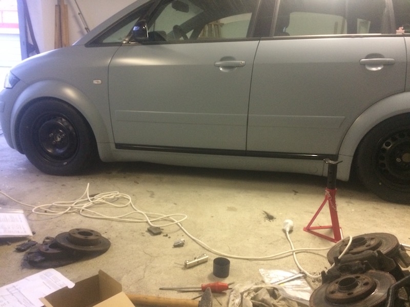Währendessen hab ich mich entschlossen die Bude von Dämmung und Teppichen zu befreien und dadurch 30kg herausgeholt. (Türverkleidungen und Dachhimmel sind noch drin, ebenso wie die Rücksitzbank)